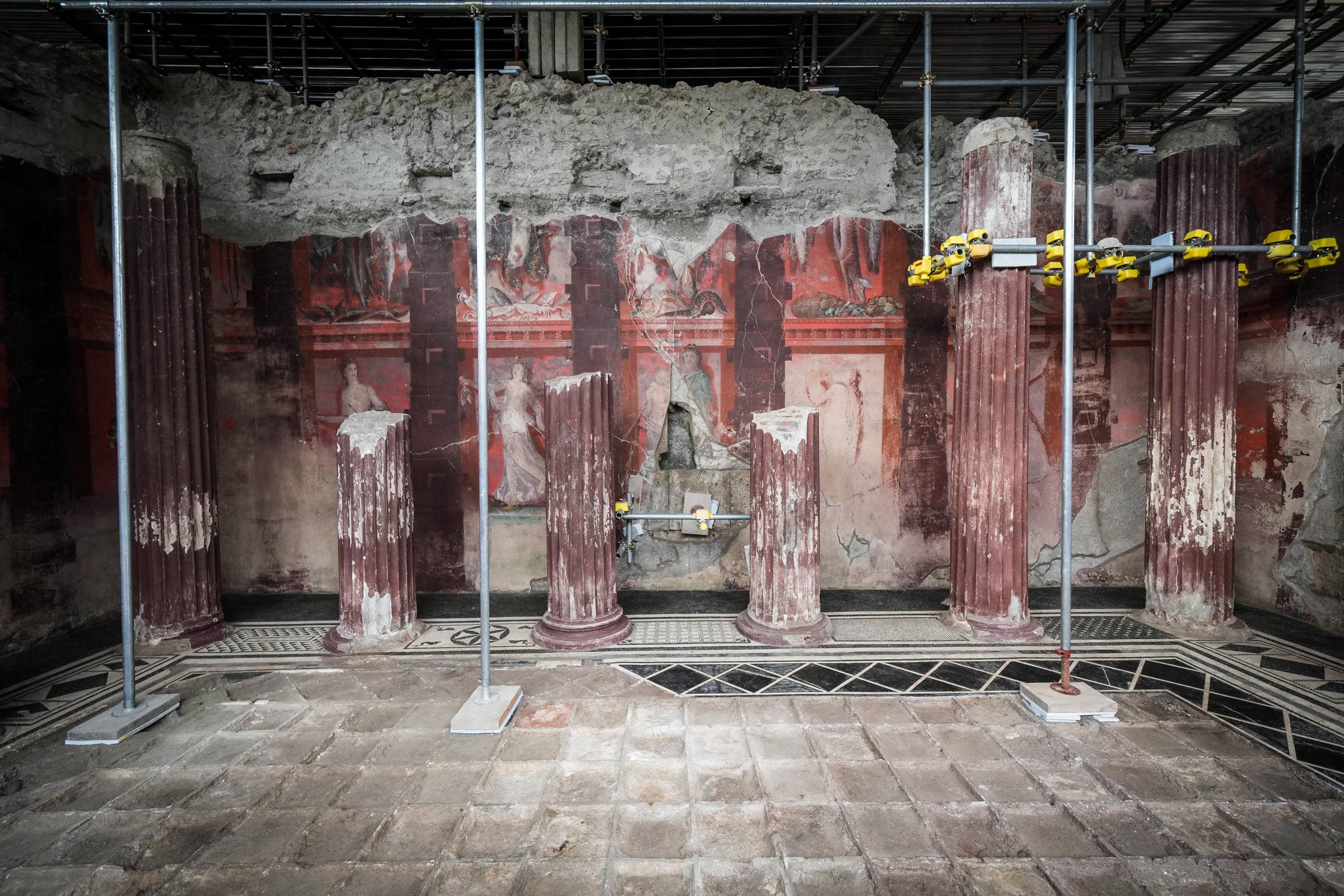 Ennesima scoperta eccezionale negli scavi di Pompei dove è emersa una "nuova" villa dei Misteri. Si tratta di una grande sala per banchetti affrescata da un ciclo di pitture che raccontano, nel dettaglio, l'iniziazione ai misteri dionisiaci. Nella sala è stato rinvenuto un fregio a dimensioni quasi reali, cioè una "megalografia", proprio come accaduto nella villa dei Misteri e a più di 100 anni dalla sua scoperta. Gli archeologi hanno battezzato la dimora con il fregio "casa del Tiaso", proprio in riferimento al corteo di Dioniso.