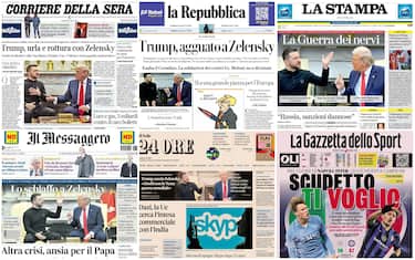 In apertura dei giornali, lo scontro alla Casa Bianca tra Trump e Zelensky. Il presidente americano: "Ci porti alla Terza guerra mondiale, torna quando sei pronto per la pace". Il leader ucraino: "Non sono qui a giocare a carte". Mosca esulta, Bruxelles fa quadrato intorno a Kiev. Meloni: "Subito un vertice Usa-Ue". Poi le condizioni del Papa, ieri colpito da una nuova crisi respiratoria. Infine il via libera del governo al decreto contro il caro bollette