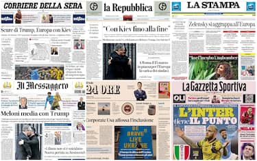 In apertura dei giornali, la telefonata tra Meloni e Trump in vista del vertice a Londra di oggi tra Zelensky e gli alleati europei. La premier, presente nella capitale inglese, vuole rilanciare l'ipotesi di un summit tra Usa e Ue. Starmer intanto accoglie il leader ucraino, reduce dallo scontro nello Studio Ovale: "Con Kiev fino alla fine". Poi le condizioni del Papa, tornato stabile: "Non ha febbre e non è allettato". Infine la Serie A: finisce 1-1 la sfida Scudetto tra Napoli e Inter