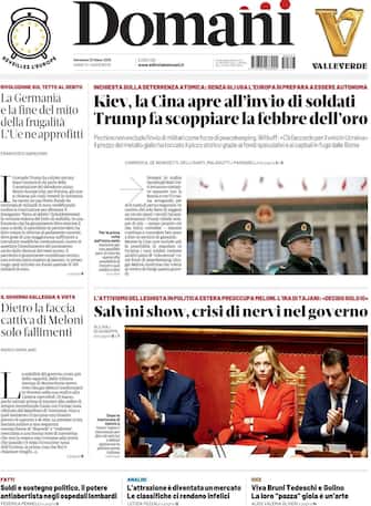 - Pace, la mossa della Cina: "Pronti per i volenterosi". Pechino potrebbe entrare nella coalizione lanciata da Macron e così inviare forze di peacekeeping in Ucraina. Giovedì Meloni andrà a Parigi per il vertice su Kiev. Tajani a Salvini: "La politica estera la faccio io e Meloni". Lo spirito di Ventotene è un perfetto sconosciuto per il governo italiano e per l'intera classe politica europea. Sport, Brignone leggendaria: vince la Coppa del mondo di sci. Ieri è stata cancellata la discesa negli Usa: nessuna delle rivali può raggiungerla