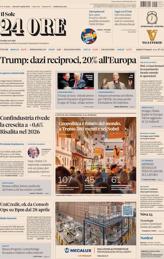 - L'amministrazione Usa impone tariffe all'Ue: "Trump: dazi reciproci, 20% all'Europa". L'indiscrezione: "Trump ai suoi: 'Musk presto lascerà l'incarico di governo'. Il capo di Tesla: 'Fake news'". Emerge un'altra indiscrezione: "Amazon presenta un'offerta per TikTok, in corsa anche il fondatore di OnlyFans". Spazio al Pil: "Confindustria rivede la crescita a +0,6%, risalitanel 2026". E infine, Unicredit: "Ok da Consob: Ops su Bpm dal 28 aprile"