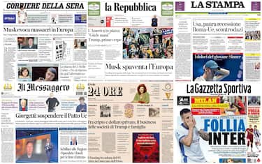 Aperture dei giornali sempre dedicate agli effetti dei dazi: dopo il tonfo delle Borse, potrebbe dimettersi il segretario al Tesoro Usa. Proteste anti-Trump in 50 Stati americani. Musk al Congresso della Lega: "Spero in un futuro senza tariffe. In Europa ci saranno massacri di massa causa terrorismo". Giorgetti apre alla sospensione del Patto Ue per aiutare le imprese. Ieri la manifestazione a Roma contro il riarmo europeo, Conte (M5s): "Siamo l'alternativa al governo"