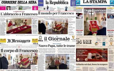 - In apertura: “Tra amici, nemici e leader silenziosi. Il mondo e l'ultimo saluto al papa”, con le analisi “La sua eredità è a rischio. Un pontefice "tollerato”. La successione è un rebus”, “Clima e green. Bergoglio è stato all'avanguardia”. Spazio anche alla guerra in Ucraina con “Putin apre a ‘colloqui diretti’”. In taglio basso: “Bpm, Unicredit contro il governo Tajani sconfitto da Meloni e Salvini”