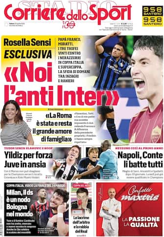 - In apertura l'intervista esclusiva a Rosella Sensi: "Noi l'anti Inter". E ancora: "La Roma è stata e resta il grande amore di famiglia". Spazio ai bianconeri: "Yildiz per forzak, Juve in ansia": "Con il Monza non può sbagliare: per la Champions serve riscatto, Conceiçao e Kolo Muani titolari". Poi, il Napoli: "Conte li batte tutti". E ancora, il Milan che si avvicina alla finale di Coppa Italia del 14 maggio: "Il ds è un nodo, Bologna nel mondo". Infine, l'arbitro di Barça-Real in lacrime