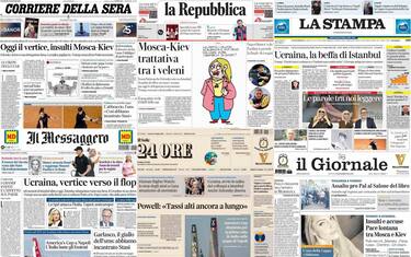 - In apertura il “Summit a Istanbul. Insulti e accuse Pace lontana tra Mosca e Kiev”. In primo piano anche l’”Assalto pro Pal al Salone del libro. Assedio agli ingressi per censurare un libro sull'antisemitismo”. Fotonotizia dedicata al delitto di Garlasco: “L’sms della Cappa: ‘Abbiamo incastrato Stasi’” In taglio basso: “Alluvioni in Emilia. I veti e gli sprechi delle giunte rosse”