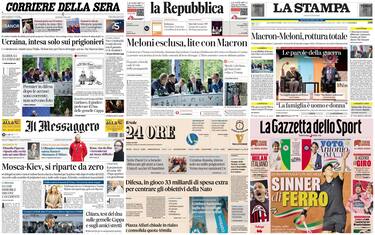 Aperture dei giornali dedicate al vertice dei Paesi "volenterosi" a Tirana, al quale ha partecipato telefonicamente anche Trump. Assente Meloni: "L'Italia è coerente, non invierà truppe a Kiev". Macron ribatte: "Abbiamo parlato d'altro". Ai negoziati di Istanbul tra ucraini e russi nessuna svolta sulla tregua, ma c'è l'accordo per un maxi-scambio di prigionieri. Caso di Garlasco, test del Dna anche alle gemelle Cappa, cugine di Chiara Poggi. Tennis, Sinner batte Paul e va in finale agli Internazionali di Roma