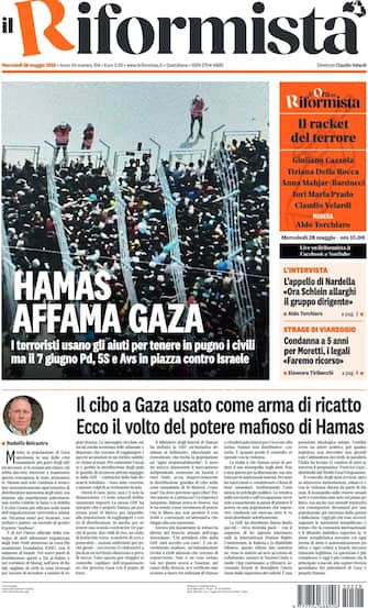 - "Hamas affama Gaza". La crisi umanitaria nella Striscia domina ancora l'apertura. "I terroristi usano gli aiuti per tenere in pugno i civili, ma il 7 giugno Pd. 5S e Avs in piazza contro Israele". In prima pagina anche l'editoriale di Rodolfo Belcastro: "Il cibo a Gaza usato come arma di ricatto, ecco il volto del potere mafioso di Hamas"