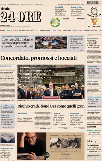 - 'Concordato, promossi e bocciati' è il titolo principale dell'edizione odierna del Sole 24 Ore. Fotonotizia dedicata al maxi piano di riamo annunciato dal premier britannico Starmer, che dice: "Vogliamo essere pronti alla guerra"