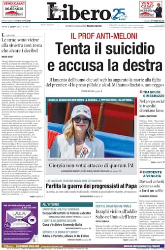 - Anche sul Giornale spazio al caso scatenato dalle parole di Meloni sul referendum , assieme alla vicenda del professore autore del post contro la figlia della premier che ora confessa di avere tentato il suicidio
