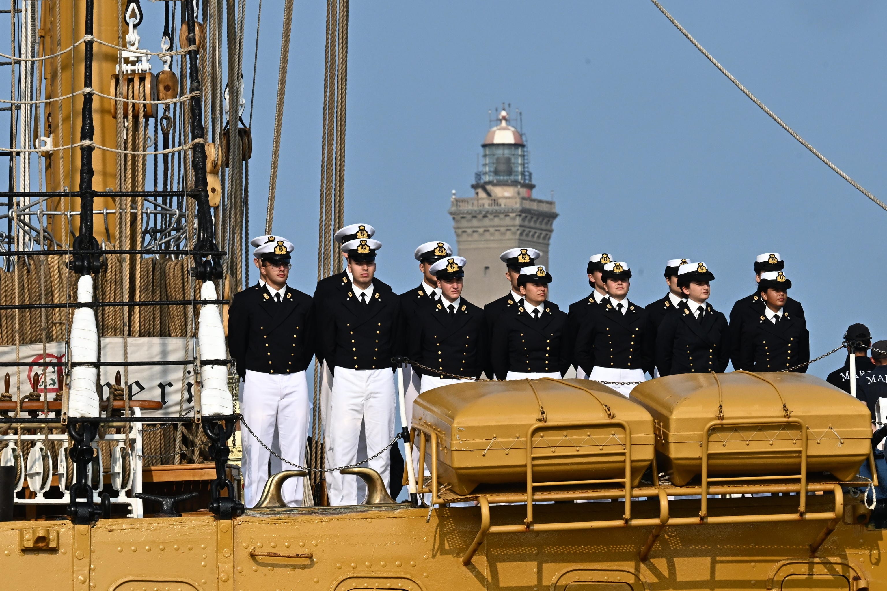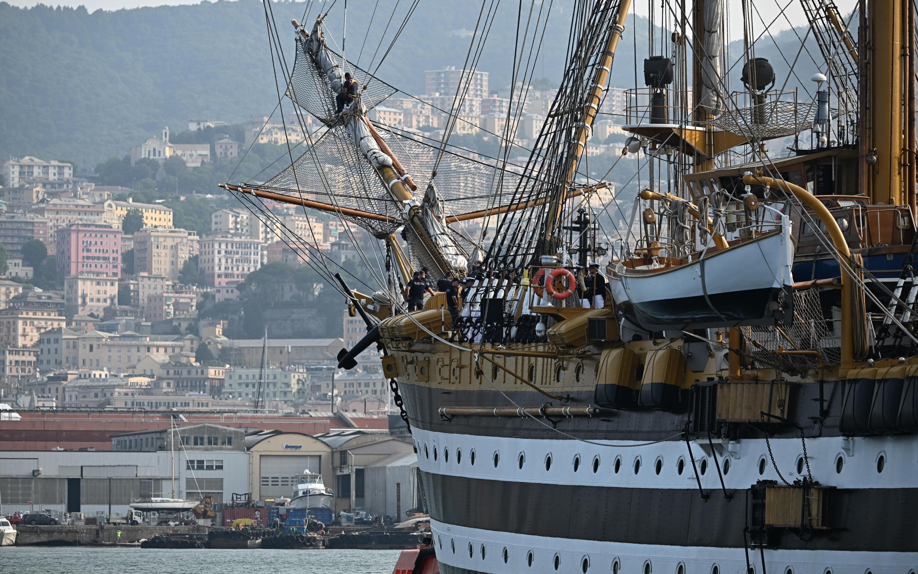 La nave scuola della Marina Marina ha ormeggiato al ponte Parodi per la tappa finale del suo tour mondiale. A Genova è stato allestito il palco per la cerimonia che chiuderà ufficialmente i due anni di navigazione in giro per il mondo, a cui partecipano anche il presidente della Repubblica, Sergio Mattarella, e il ministro della Difesa, Guido Crosetto