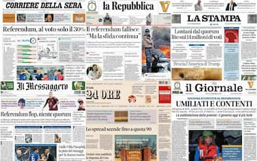 Le prime pagine dei quotidiani di oggi sono dedicate al mancato raggiungimento del quorum nei cinque referendum su lavoro e cittadinanza. L’affluenza si è fermata poco sopra il 30%. Il centrodestra esulta. Il Pd si divide sull’esito, mentre Schlein sottolinea che “oltre 14 milioni” di persone si sono recate alle urne, “più di quelle che hanno votato la destra” portando Meloni al governo. Spazio anche alle proteste negli Stati Uniti contro i raid anti-illegali dell'amministrazione Trump