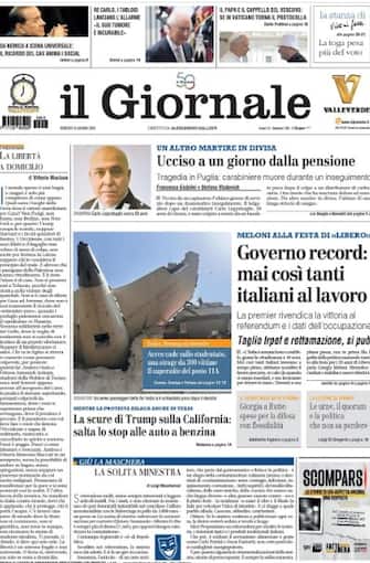 - Apertura dedicata alla morte di un carabiniere in Puglia: "Un altro martire in divisa, ucciso ad un giorno dalla pensione". Spazio poi alla tragedia del Boeing in India, "una strage da 300 vittime". Politica ed economia: "Governo record, mai così tanti italiani al lavoro". Meloni incontra Rutte. Usa: "La scure di Trump sulla California: salta lo stop alle auto a benzina"