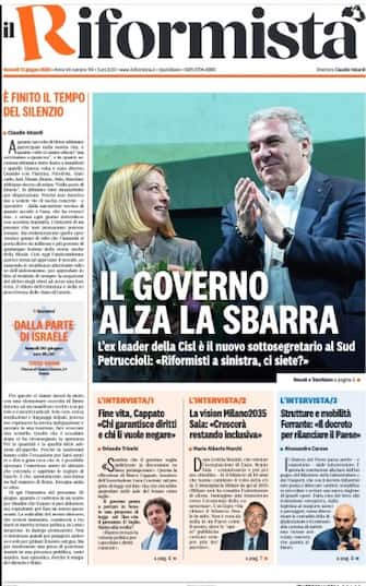 - "Il governo alza la sbarra". L'ex leader della Cisl è il nuovo sottosegretario al Sud. Petruccioli: "Riformisti a snistra, ci siete?". Fine vita, intervista a Cappato: "Chi garantisce diritti e chi li vuole negare". Strutture e mobilità, Ferrante: "Il decreto per rilanciare il Paese". La vision di Milano2035, parla Sala: "Crescerà restando inclusiva"