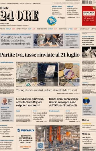 - Aperura sulle partite Iva: "Tasse rinviate al 21 luglio". Dal 22 luglio al 20 agosto "previsto solo il pagamento dello 0,40% aggiuntivo". Usa: "Trump rilancia sui dazi, dollaro ai minimi da tre anni. Liste d'attesa "più veloci, accordo Stato-Regioni sui poteri sostitutivi". Tragedia aerea in India, volo di Air India "si schianta subito dopo il decollo: oltre 300 vittime". Costa (Ue): "Israele rispetti il diritto dei due Stati"