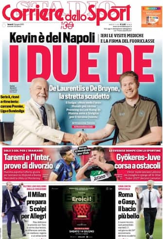 - A Napoli ecco " i due De". Il presidente De Laurentiis ufficializza l'acquista del centrocampista belga De Bruyne. Calciomercato: per l'Inter "prove di divorzio" con Taremi, la pista Gyokeres-Juventus si complica mentre il Milan prepara "5 colpi per Allegri" e la Roma presenterà Gasperini martedì 17 nel giorno dell'anniversario del terzo scudetto