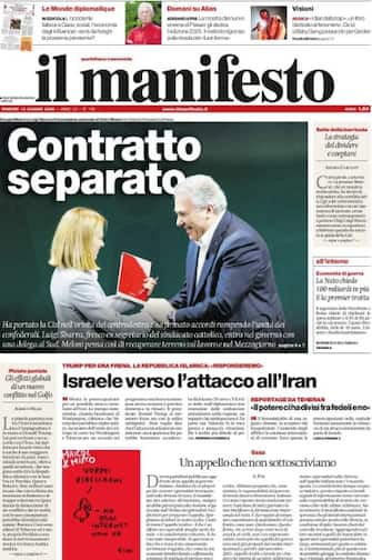 - Tra i temi in prima pagina il Medioriente: "Tempi di un attacco tra Israele ed Iran". Politica, Meloni "oltre la Sbarra": l'ex leader della Cisl diventa sottosegretario e apre "un varco nella galassia moderata". Guerra in Ucraina: "L'effetto della ragantela di Kiev sui russi si vede già. Ma serve un logoramento finanziario di Mosca"