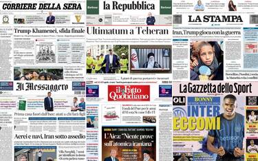 - Il conflitto Israele-Iran apre il giornale: "Trump-Khamenei, sfida finale". Nuovi raid, la Casa Bianca approva "i piani per l'offensiva". Il leader Usa: "Ho perso la pazienza. Se attacco? Forse". Teheran: "Bugiardo guerrafondaio". Fotonotizia sull'inizio dell'esame di maturità: "I ragazzi scelgono il tema sul rispetto". Giallo di Villa Pamphilj: "Tre mancati controlli, il capo della polizia ordina l'inchiesta"
