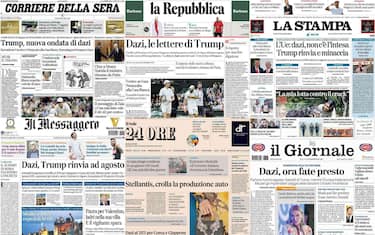 - Anche qui il focus principale è sul rinvio dei dazi Usa al primo agosto: “Dazi, le lettere di Trump” con trattative aperte tra Usa e Eu e le parole di von der Leyen all'Europarlamento: "La sfiducia dagli amici dei russi". In primo piano Gaza: “Vertice su Gaza. Netanyahu alla Casa Bianca”. In evidenza anche al “mistero delle morti a Mosca suicida il ministro rimosso da Putin”. E Wimbledon: “Il dramma di Dimitrov, domina ma si infortuna. Sinner avanti ai quarti”