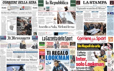 - In apertura ancora il caso urbanistica a Milano e il sindaco Giuseppe Sala, che risulta tra i 74 indagati: "Assedio a Sala, Meloni frena". I pm accusano: "Così hanno ridotto Milano a merce da saccheggio". La premier: "Non automatiche le dimissioni". In prima pagina anche i raid israeliani su una chiesa a Gaza: "Ferito il parroco". Spazio poi alla morte del base jumper Felix Baumgartner per "malore in volo"