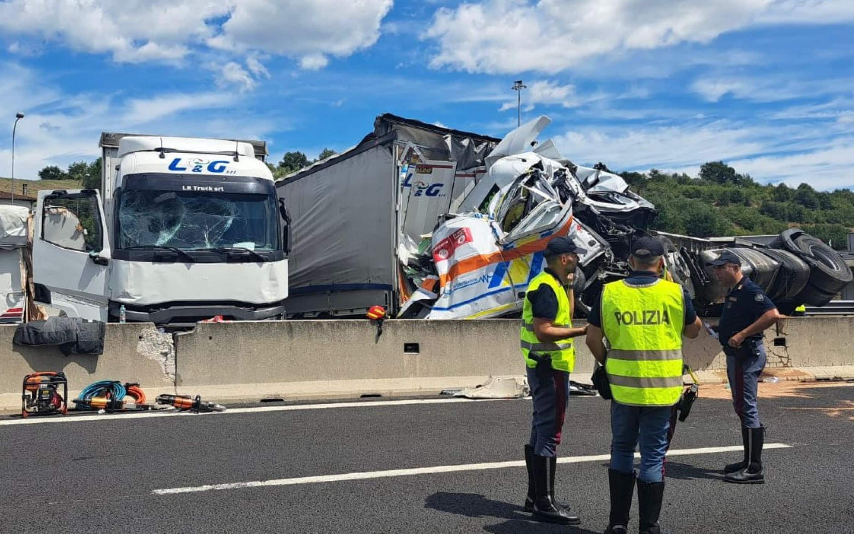 Incidente stradale in A1, camion travolge mezzi in coda: 3 morti su ambulanza e 15 feriti