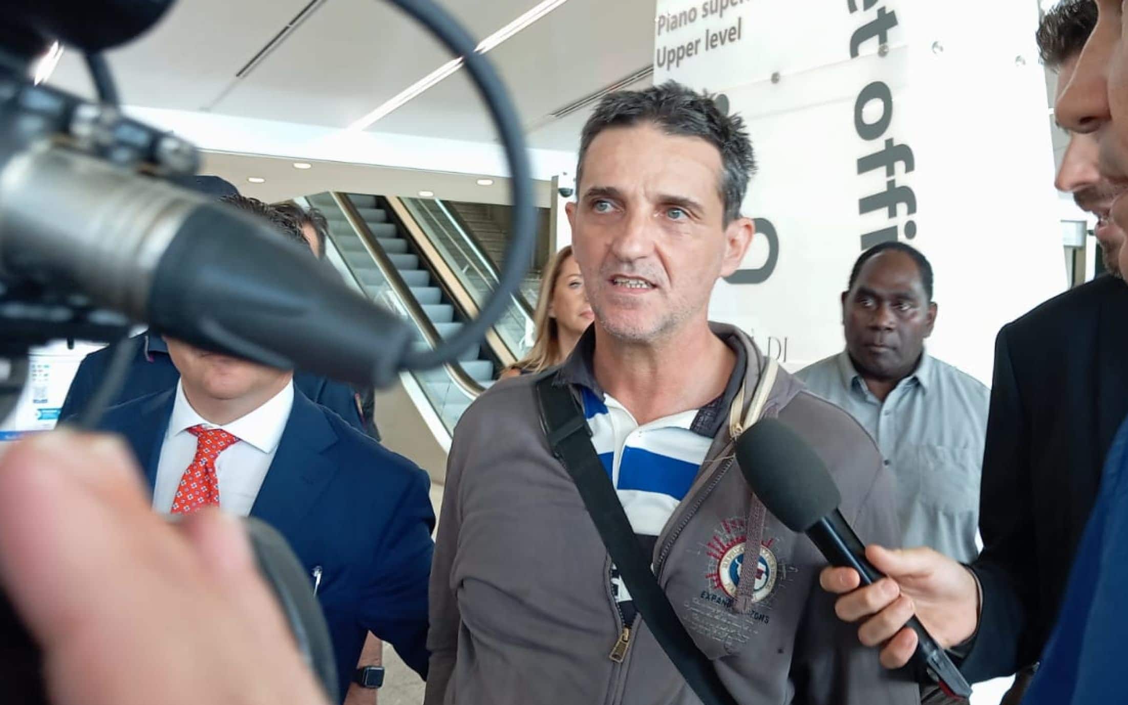 Il velista pescarese, assolto dall'accusa di traffico internazionale di stupefacenti, è atterrato a Fiumicino: "Ce l'ho fatta. Alla fine ho ottenuto quello per cui abbiamo lottato e sono stato assolto con la formula piena. Arrivare a questo è stata però davvero dura"