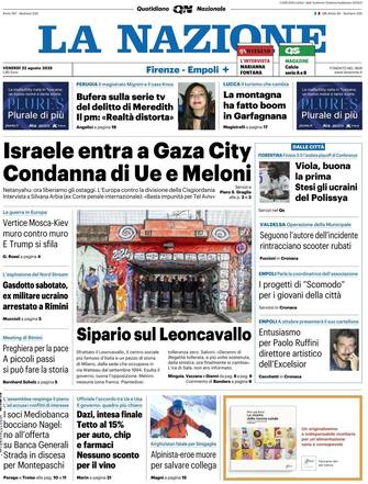 - "Israele entra a Gaza City, condanna di Ue e Meloni". Netanyahu: "Ora liberiamo gli ostaggi". L'Europa contro "la divisione della Cisgiordania". Guerra in Ucraina: "Vertice Mosca-kiev muro contro muro. E Trump si sfila". Milano: "Sipario sul Leoncavallo". Dazi Usa-Ue: "Intesa finale al 15% per auto, chip e farmaci". Kirghizistan: "Alpinista eroe muore per salvare una collega"