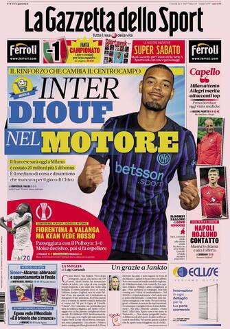 - Calciomercato in apertura. Napoli: "Conte vuole il sì di Hojlund, pressing totale sul danese". Inter: "Preso Diouf". La Roma resta "appesa a Sancho". Playoff di Conference League, la Fiorentina vince in trasferta e arriva "la firma di Kean" per il rinnovo di contratto. Serie A, si riparte: domani le prime quattro gare.