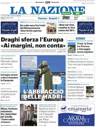 Aperture dei giornali sulla "sferzata" dell'ex premier Draghi all'Ue, ritenuta marginale sulle questioni economiche e di politica estera. Poi spazio ai nodi ancora da sciogliere per il raggiungimento della pace in Ucraina. Medioriente, l'Onu dichiara lo stato di carestia a Gaza. Ma Gerusalemme: "Dati falsi". Inchiesta sull'urbanistica a Milano, via i domiciliari al costruttore Catella: "Torno subito al lavoro"