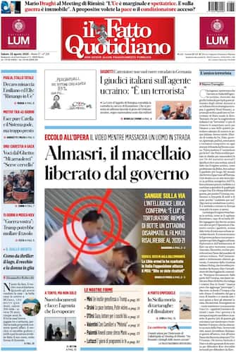 - L'Onu accusa Israele di aver provocato una carestia a Gaza e chiede di far entrare gli aiuti umanitari. Ma Gerusalemme: "Dati falsi". Migliaia di palestinesi in fuga dopo l'inizio dell'occupazione dello Stato ebraico. Al Meeting di Rimini l'ex premier Draghi sferza l'Europa: "Bruxelles è irrilevante, è lenta e marginale in economia e politica estera. Per tornare protagonista deve cambiare". Un video dell'ex capo delle milizie Rada e della polizia giudiziaria libica Almasri riaccende lo scontro politico