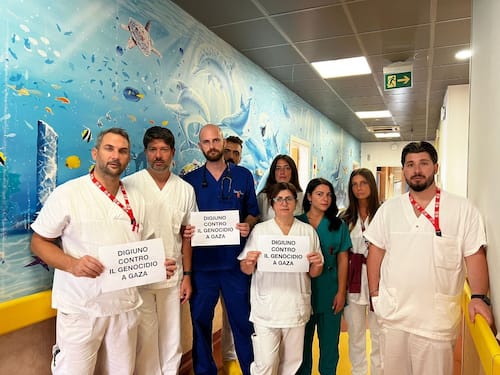 - Medici, infermieri, operatori sociosanitari uniti contro la guerra a Gaza. Il personale sanitario e amministrativo dell’Azienda Ospedaliera dei Colli in provincia di Napoli ha deciso di aderire alla giornata di digiuno contro la catastrofe umanitaria in corso nella Striscia. L'iniziativa è stata promossa il 28 agosto dalla rete #digiunogaza, da Sanitari per Gaza e dalla campagna BDS "Teva? No grazie"