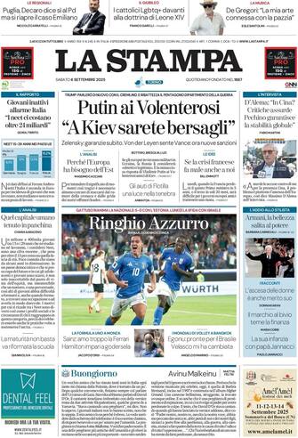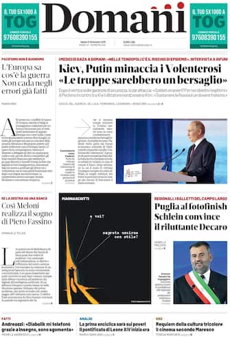 Le aperture dei giornali si focalizzano sulla reazione di Putin dopo il vertice dei Volenterosi: "Le truppe occidentali in Ucraina saranno un bersaglio legittimo". Zelensky evoca "migliaia di soldati alleati" a Kiev per la sicurezza. Israele colpisce un grattacielo di 12 piani a Gaza. La Commissione Ue multa Google per 2,95 miliardi: Trump minaccia nuovi dazi. Regionali, in Puglia Decaro candidato del centrosinistra
