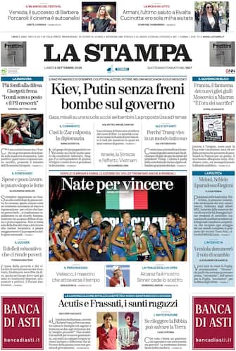 - "Kiev, Putin senza freni. Bombe sul governo" è il titolo d'apertura del quotidiano torinese. Si tratta del raid "più massiccio di sempre: colpiti i palazzi del potere". Gaza: "Missili su una scuola, uccisi sei bambini". Francia: "Il fantasma dei nuovi gilet gialli". Politica italiana e manovra: "Più fondi alla difesa, Giorgetti frena". Canonizzazione in Piazza San Pietro: "Acutis e Frassati, i santi ragazzi". Azzurre del volley campionesse ai mondiali: "Nate per vincere". Us Open: "Alcaraz fa il mostro, Sinner cede lo scettro"