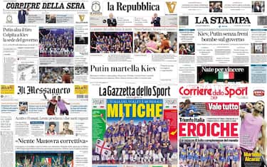 Gli ultimi sviluppi della guerra in Ucraina con il maxi raid di droni che ha colpito a Kiev la sede del governo, l'attacco israeliano a Gaza su una scuola-rifugio, la cerimonia a San Pietro per Acutis e Frassati santi e le emozioni dello sport con la vittoria mondiale delle azzurre del volley e la sconfitta, agli Us Open, di Sinner contro Alcaraz. Questi alcuni dei principali temi presenti sulle prime pagine dei quotidiani, in edicola oggi