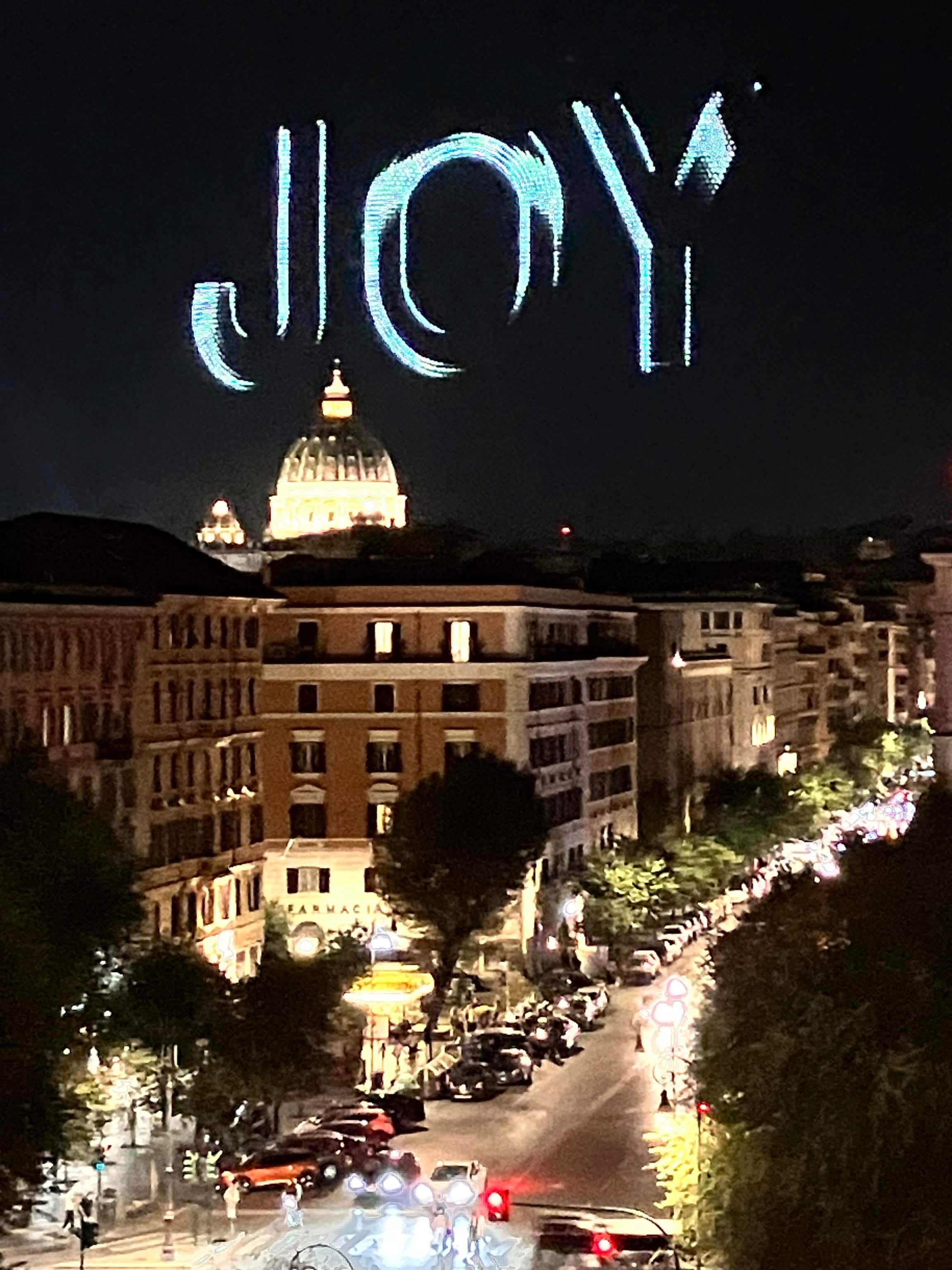Un suggestivo spettacolo ha illuminato il cielo della Capitale nella serata di sabato. Le luci hanno ricreato nel cielo scuro immagini e scritte per omaggiare il Giubileo e le meraviglie artistiche del Vaticano