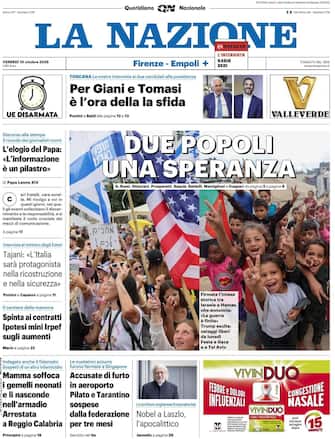 - "Due popoli, una speranza" è l'apertura della Nazione sulla tregua a Gaza. Trump esulta: "Ostaggi liberi da lunedì". Mentre è "festa a Gaza e a Tel Aviv". Spazio anche all'intervista al vicepremier Tajani: "L'Italia sarà protagonista nella ricostruzione e nella sicurezza". Spazio anche alla Manovra: "Spinta ai contratti, ipotesi Irpef sugli aumenti". Poi, la cronaca: "Mamma soffoca i gemelli neonati e li nasconde nell'armadio: arrestata a Reggoio Calabria". Infine, a Krasznahorkai il Nobel per la Letteratura