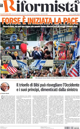 - Sull'accordo a Gaza, Il Riformista scrive: "Forse è iniziata la pace". "Piazze in festa, ma sarà vera tregua solo quando Hamas rilascerà tutti gli ostaggi e libererà Gaza". In prima pagina l'editoriale di Claudio Velardi: "Il trionfo di Bibi può risvegliare l'Occidente e i suoi principi, dimenticati dalla sinistra"