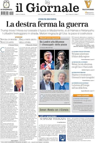 - "La destra ferma la guerra" è il titolo in prima pagina del Giornale sul cessate il fuoco a Gaza. Trump "trova l'intesa" con il "sì di Hamas e Netanyahu". Intanti, "i cittadini festeggiano in strada". La premier Meloni: "La pace si costruisce". Spazio anche ai "disoccupati della piazza", come li definisce il Giornale: "Da Landini ad Albanese". L'editoriale di Giovanni Orsina: "Non era un mostro, non è un santo". E quello di Alessandro Sallusti: "Dalla parte giusta della storia"