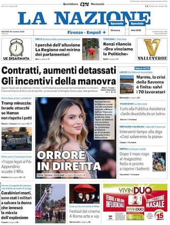 - In primo piano la Manovra: "Contratti, aumenti detassati". Intanto, "è ancora braccio di ferro con le banche" e alle famiglie "bonus casa e Isee generoso". In prima pagina anche il femminicidio di Pamela Genini, uccisa dal compagno sul balcone di casa a Milano: "Orrore in diretta". Spazio anche alla minaccia di Trump a Hamas: "Israele attacchi se Hamas non rispetta i patti". Il caso dei carabinieri morti: "Sono stati i militari a salvare la donna che innescò la miccia dell'esplosione"