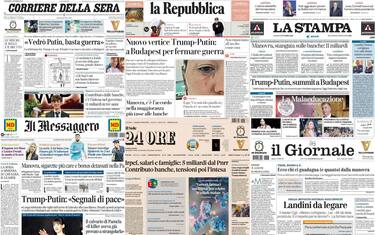 Le prime pagine dei principali quotidiani di oggi aprono con l’annuncio di un nuovo vertice tra Trump e Putin, previsto a Budapest nelle prossime settimane per “mettere fine a questa ingloriosa guerra”. La notizia arriva dopo una telefonata a sorpresa tra i due leader, alla vigilia dell’incontro di oggi alla Casa Bianca con Zelensky. In primo piano anche la manovra: trovata l’intesa nel centrodestra sulle banche, il testo approda oggi in Consiglio dei ministri