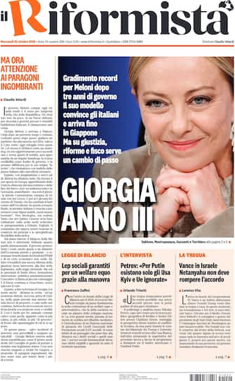 - "Giorgia anno III" è il titolo d'apertura del Riformista sul terzo anno di governo della premier. "Gradimento record per Meloni", "il suo modello convince gli italiani e arriva fino in Giappone". Ma "su giustizia, riforme e disco serve un cambio di passo". Spazio anche all'intervista a Petrov sull'Ucraina: "Per Putin esistono solo gli Usa: Kyiv e Ue ignorate". Poi, il Medio Oriente: "Vance in Israele, Netanyahu non deve rompere l'accordo".