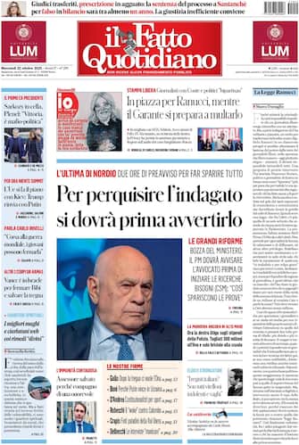 - In primo piano la bozza della riforma di Nordio: "Per perquisire l'indagato si dovrà prima avvertirlo". La reazione di Bisogni (Csm): "Così spariscono le prove". Spazio al caso del giornalista Ranucci: "In piazza per Ranucci, mentre il Garante si prepara a multarlo". Poi, l'incarcerazione di Sarkozy e le parole di Plenel: "Vittoria, è mafio-politica". Focus anche sulla guerra in Ucraina, con il summit Trump-Putin saltato e il piano dell'Ue in dodici punti per la pace. Infine, il Medio Oriente: Vance in Israele per "salvare la tregua".