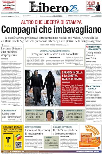 - "Compagni che imbavagliano" è il titolo d'apertura sulla manifestazione per Sigfrido Ranucci che "si trasforma in un comizio anti-Meloni". Spazio anche all'incarcerazione dell'ex presidente francese Sarkozy. In prima pagina anche l'annullamento del vertice Trump-Putin. Intanto, in Israele JD Vance avvisa Hamas: "Copnsegni le armi". Focus anche sullo sport, dopo .la riununcia di Sinner alla Coppa Davis: "Perché Sinner fa bene a pensare a se stesso".