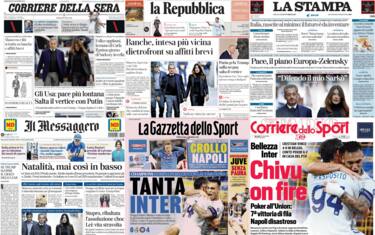 Sulle prime pagine dei principali quotidiani nazionali troviamo la guerra in Ucraina, con il "no" alla tregua da parte di Mosca e l'annullamento del vertice tra Trump e Putin. Intanto, l'Ue stila un piano in dodici punti per la pace a Kiev. Spazio anche all'incarcerazione dell'ex presidente francese Nicolas Sarkozy, condannato a 5 anni per il caso dei finanziamenti libici nella campagna elettorale del 2007. Focus sulla Manovra: si tratta su banche e affitti brevi. Allarme natalità dall'Istat: "Mai così in basso"