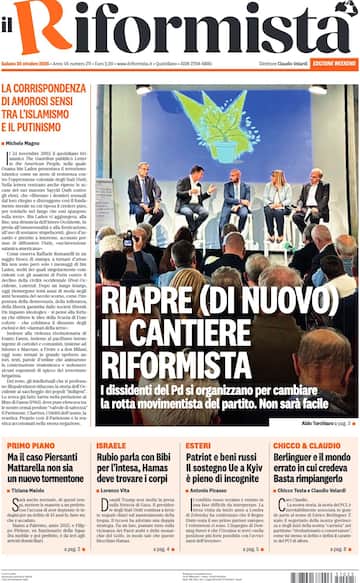 - Riapre di nuovo il cantiere riformista: i dissidenti del Pd si organizzano per cambiare la rotta movimentista del partito, anche se non sarà facile. Svolta nel caso dell'omicidio di Piersanti Mattarella: Filippo Piritore, ex funzionario della Squadra mobile di Palermo, finisce ai domiciliari per "aver depistato le indagini": il Riformista si augura che la vicenda non diventi "un nuovo tormentone". Guerra in Ucraina, il sostegno dell'Europa a Zelensky è ancora pieno di incognite, nonostante l'incontro con i Volenterosi a Londra