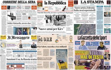 Sulle aperture dei giornali, la svolta sull'omicidio di Piersanti Mattarella: Filippo Piritore, ex dirigente della Squadra mobile di Palermo, è ai domiciliari con l'accusa di depistaggio. Vertice della coalizione dei Volenterosi a Londra, con Zelensky che accusa Putin di puntare a "un disastro umanitario quest'inverno in Ucraina". L'inviato russo Dmitriev vola a Washington per trattare sulle sanzioni americane alla Russia