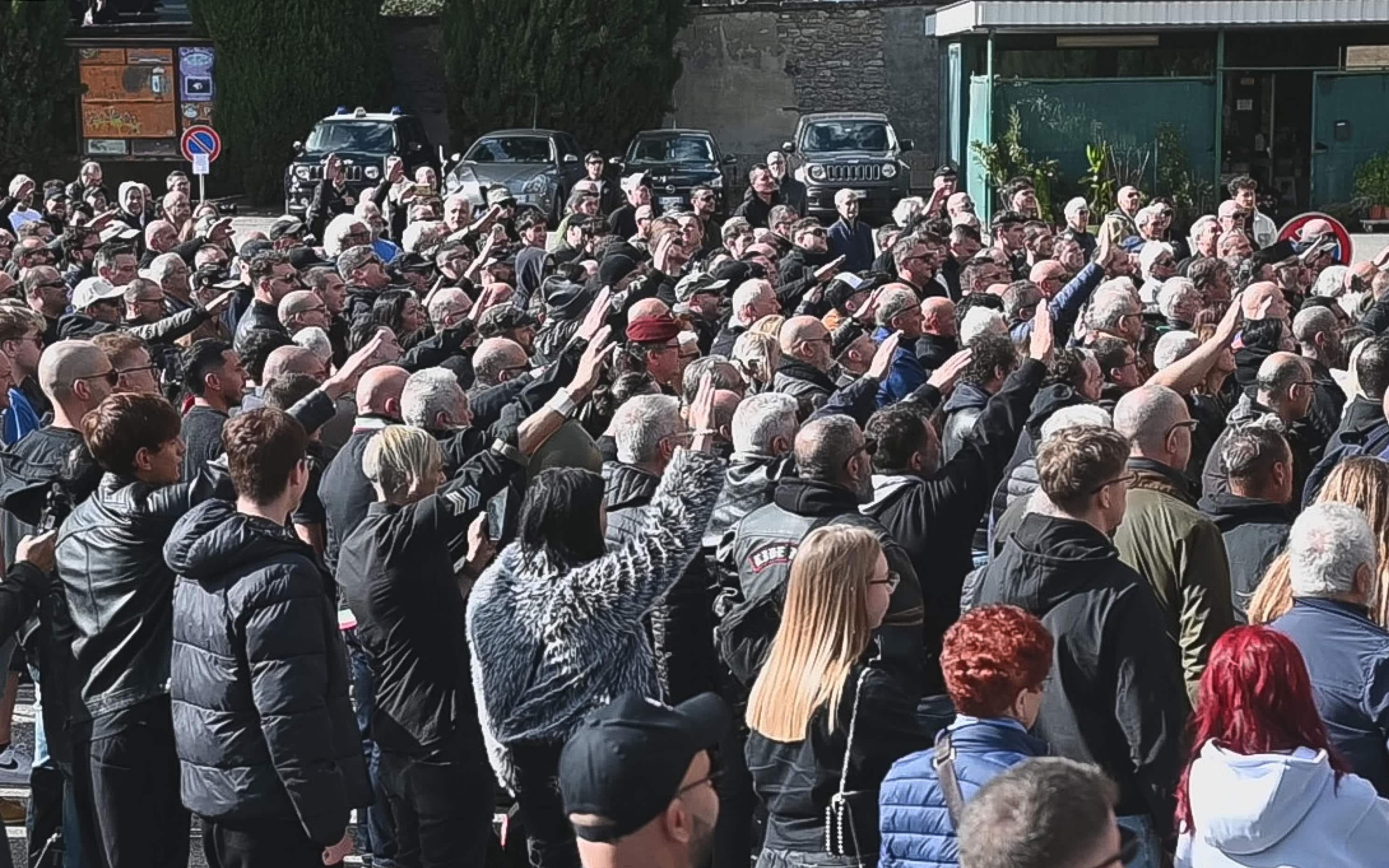 Nonostante l'invito, anche odierno, della famiglia Mussolini a mettere la mano sul cuore, alcune decine di manifestanti hanno alzato il braccio teso dopo il rito del "presente". Al raduno consueto, organizzato dalle pronipoti del duce, quest'anno si è aggiunta Forza Nuova, col leader Roberto Fiore
