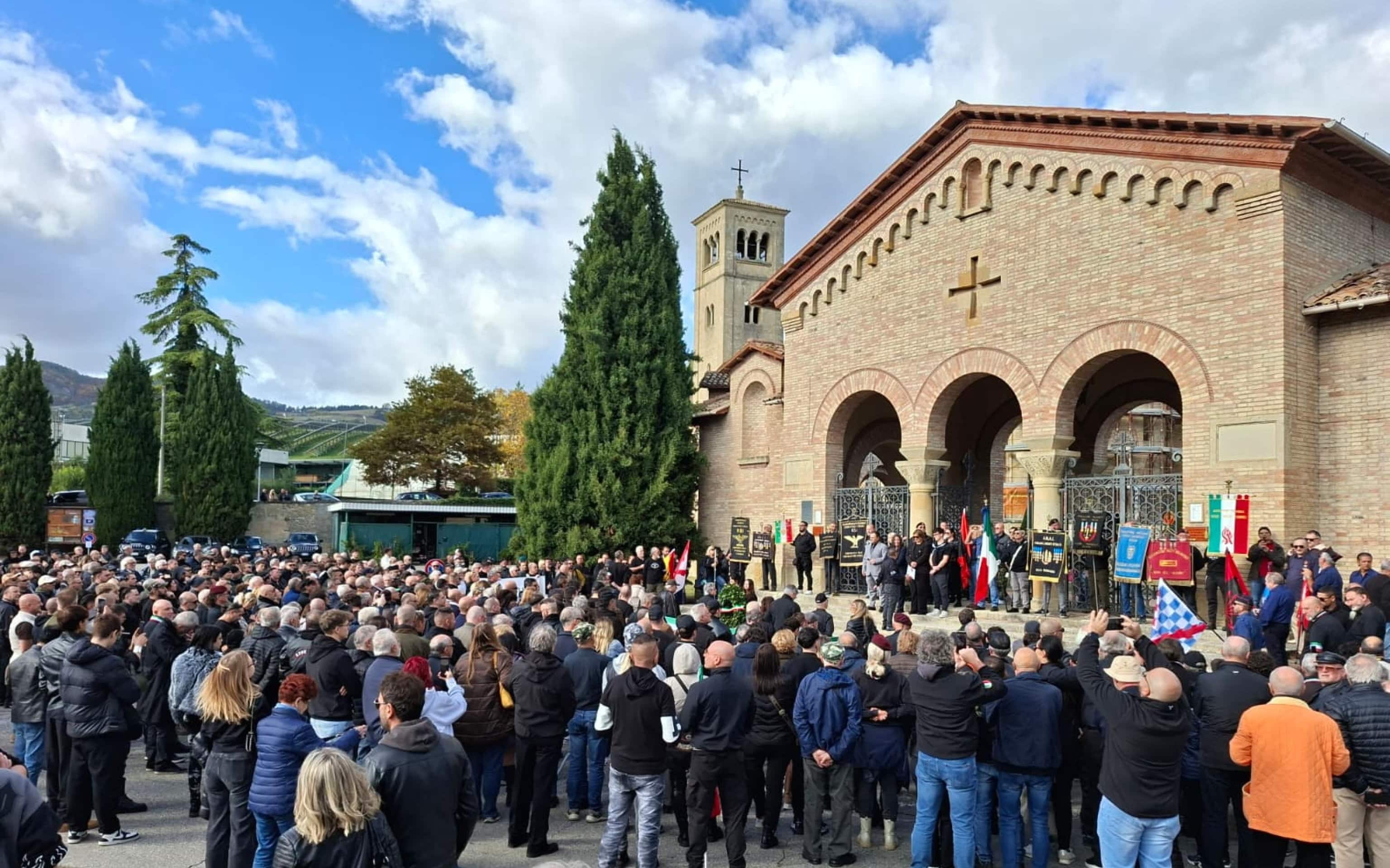 Oltre mille - 700 per la Questura - i manifestanti che questa mattina hanno preso parte alla camminata dalla piazza di Predappio, il paese natale di Benito Mussolini sulla collina forlivese, al cimitero di San Cassiano per la commemorazione della Marcia su Roma. Davanti alla cripta del Duce sono tornati, dopo anni, i saluti romani. Nonostante l'invito, anche odierno, della famiglia Mussolini a mettere la mano sul cuore, alcune decine di manifestanti hanno alzato il braccio teso dopo il rito del "presente". Al raduno consueto, organizzato dalle pronipoti del duce, quest'anno si è aggiunta Forza Nuova, col leader Roberto Fiore.
