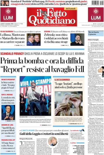 - 'Prima la bomba e ora la diffida. Report resiste al bavaglio FdI' scrive Il Fatto Quotidiano. "Legge Anziani" un flop: aiuti solo a 2mila persone