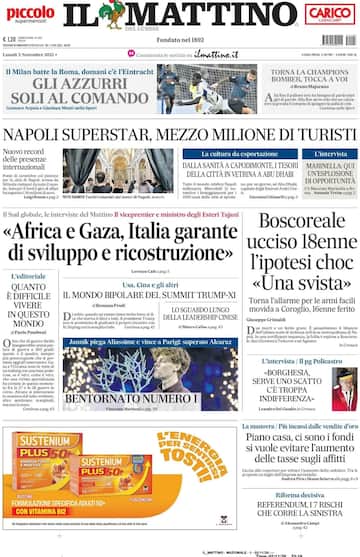 - Sul Mattino si torna a parlare di Gaza, con l'intervista al ministro degli Esteri Tajani che dice: "Italia garante di sviluppo e ricostruzione". Nuovo record di turisti a Napoli: mezzo milione di presenze internazionali