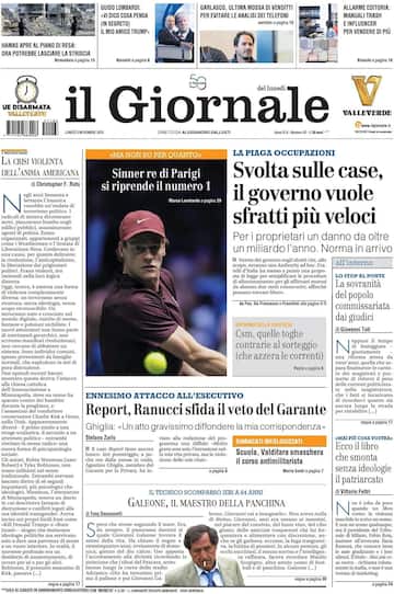 - Sulla Stampa in primo piano la strategia del governo per gli sfratti lampo. Salvini e Nordio studiano il decreto: fuori casa chi non paga l'affitto per due mesi. Anche qui in evidenza nella fotonotizia a centro pagina la riconquista del primato nel ranking Atp da parte di Sinner. Di spalla la cronaca, col caso del ragazzo rapito e gettato nel fiume da una gang di 15enni ad Halloween